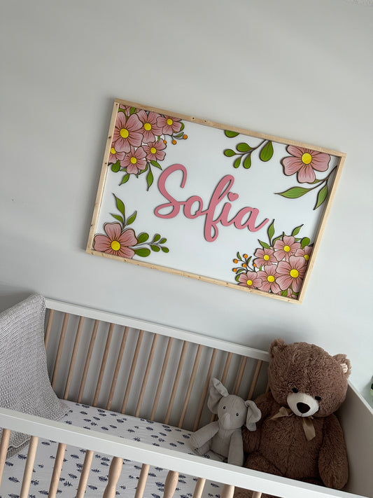 3D Flower Nursery Name Sign
