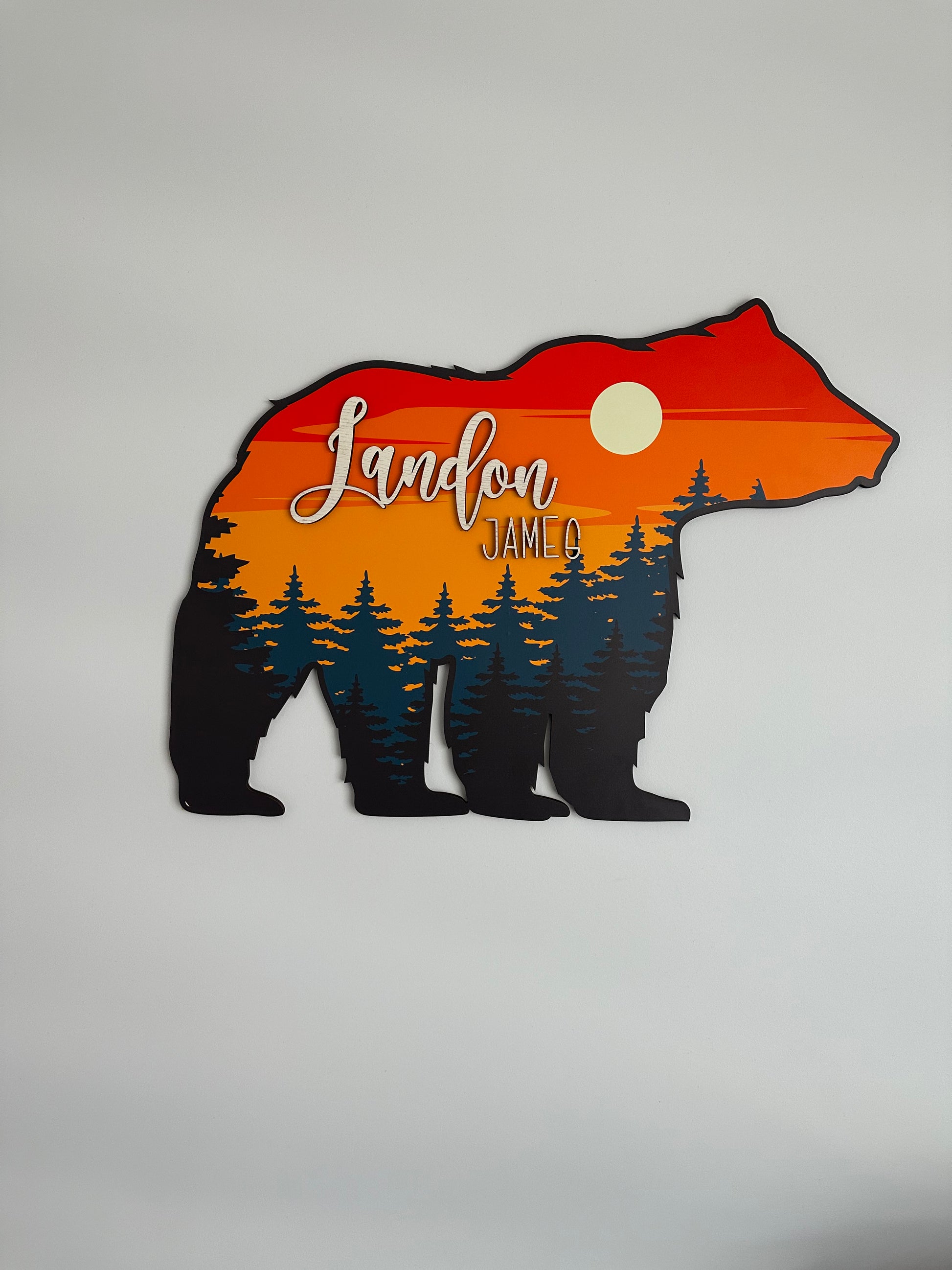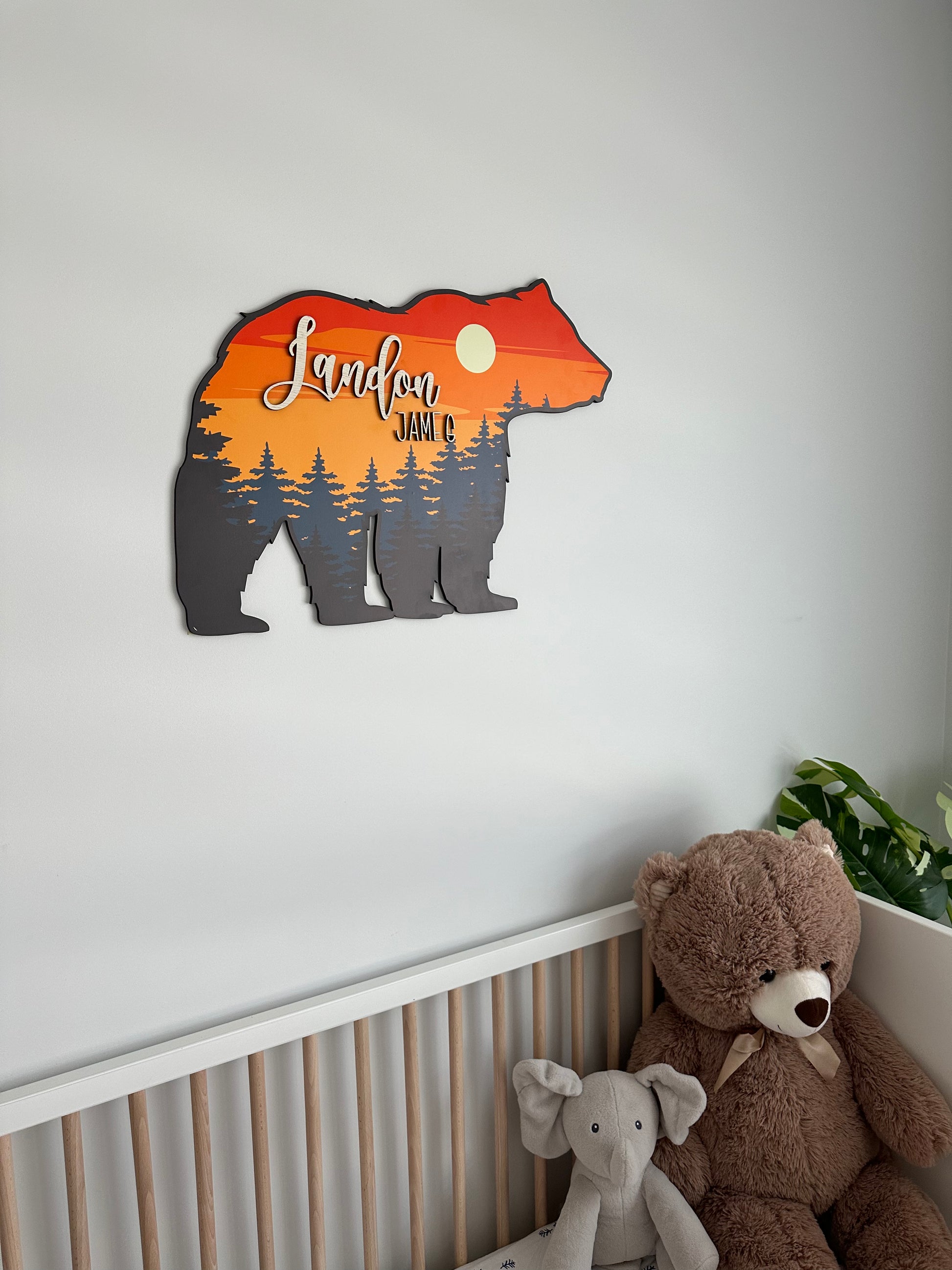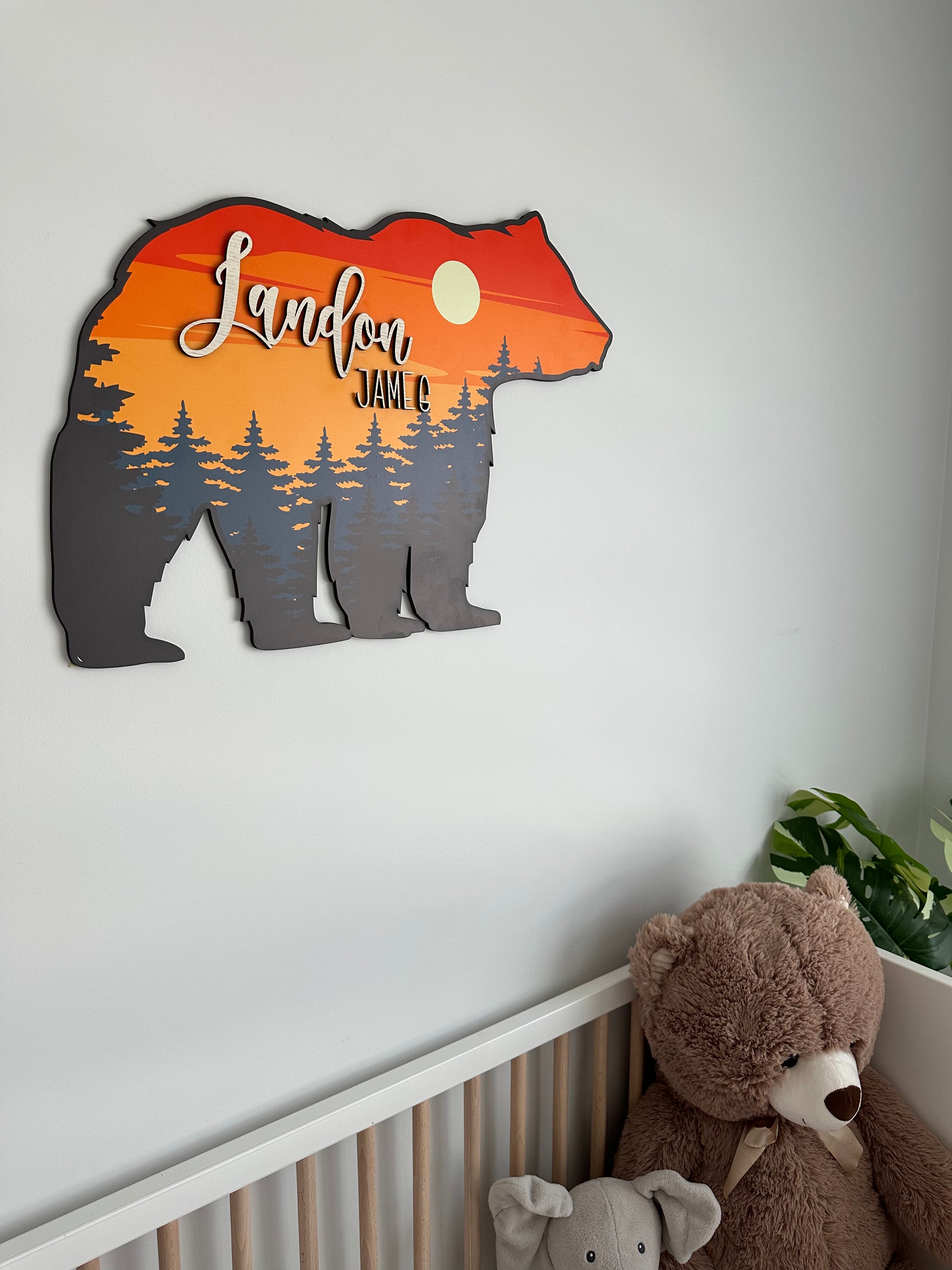 Custom Bear Wood Nursery Name, Personalized Baby Gift, Toddler Birthday Gift, Baby Shower Birthday Boy Girl Kid Room Decor Gift, Bear sign