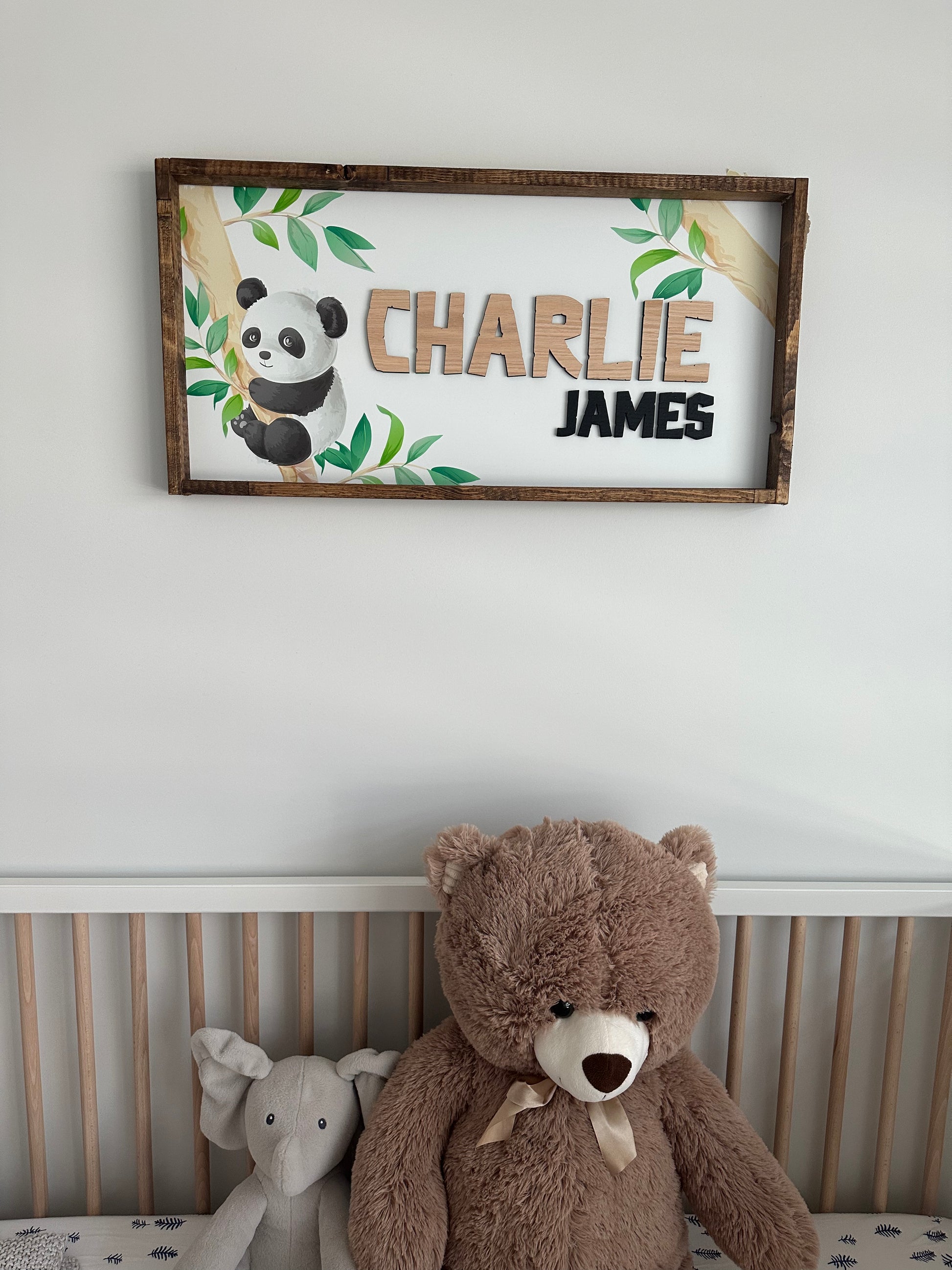 This custom name sign features a handmade, rectangle name sign. These signs are the perfect addition for your kids room or nursery room décor. They also make great gifts for a baby shower and birthdays!